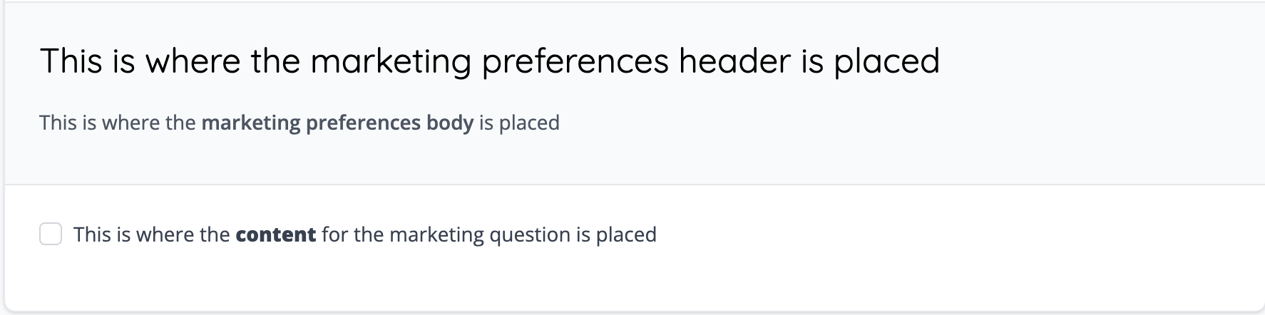 1. Enter a Marketing Preferences Header; this will appear at the top of your marketing preferences section.