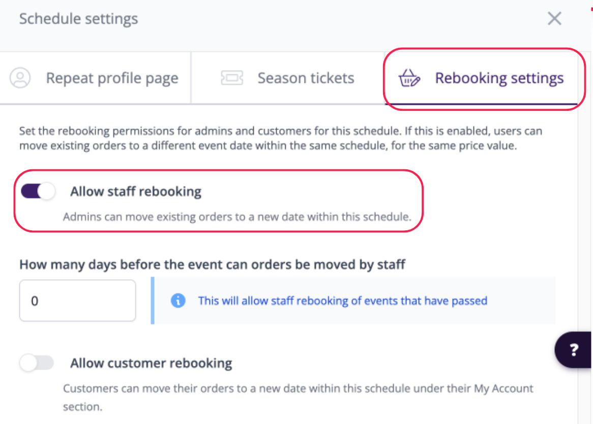 In order to allow box office users to change the event date for a ticket purchased for an event within a schedule, 'staff rebooking' needs to be enabled.