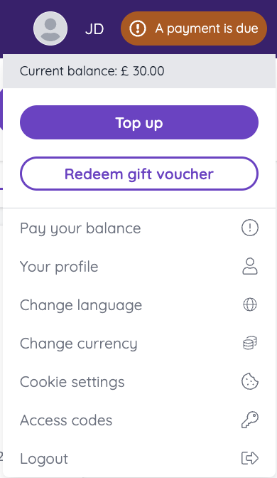 In the top right-hand corner of the site A payment is due should be clicked, and selected in the drop down menu: