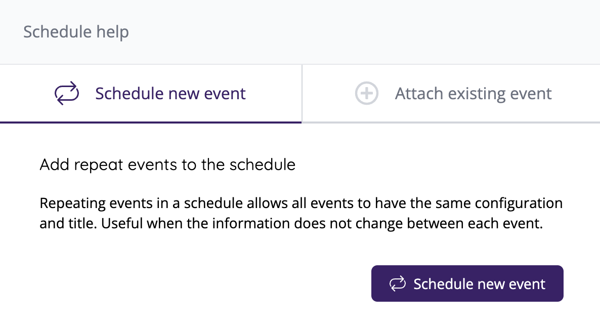 If you've already created all events needed, select Attach existing event to add the events to the schedule