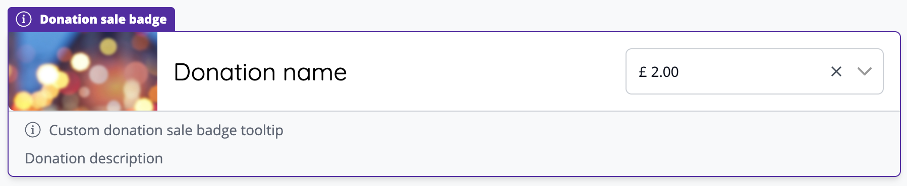 - Customise the badge and tooltip wording shown when the donation is off sale.