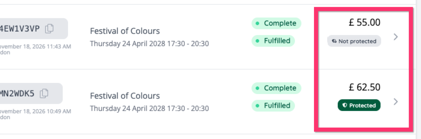 In the admin area, protected orders are clearly identified so you will know which orders have been protected and which ones haven't: