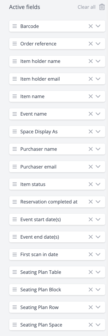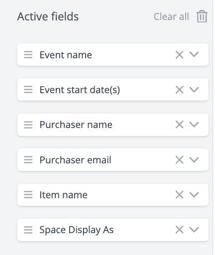 - Remove any active fields that are not relevant to your roll call by clicking on the 'X' button