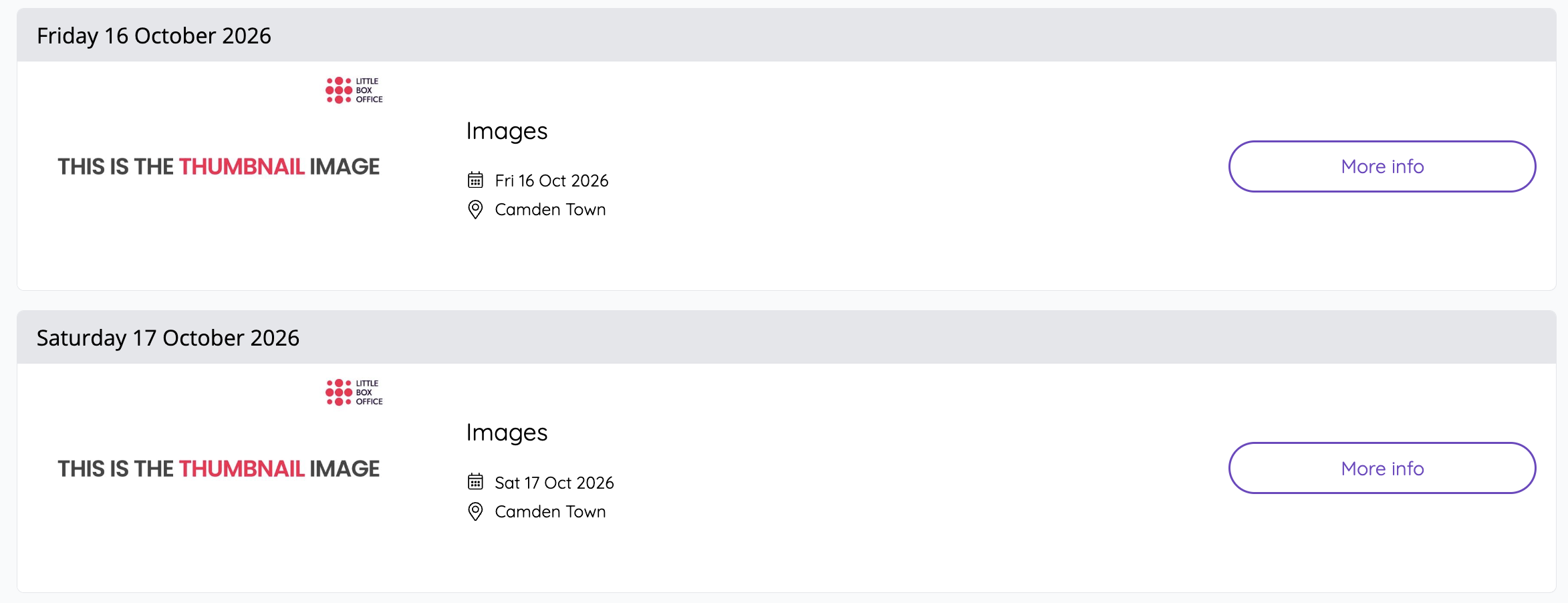- Purpose: Offers a quick visual reference for users browsing multiple events.